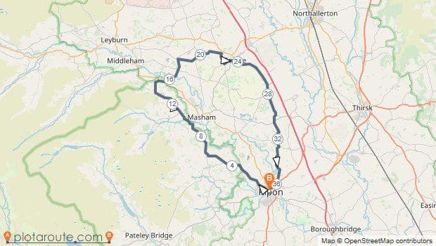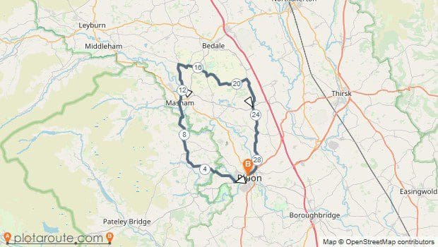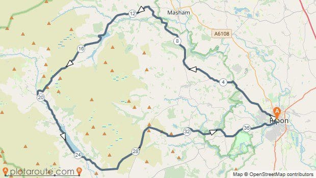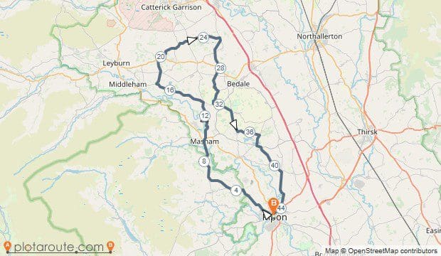 A challenging circular route encompassing Bedale, Masham & Jervaulx Abbey.