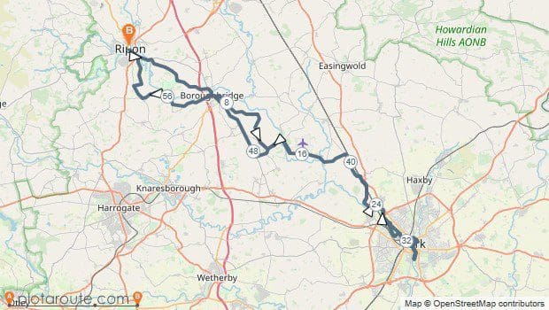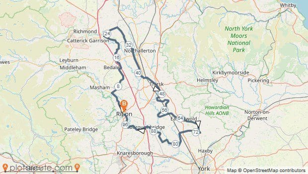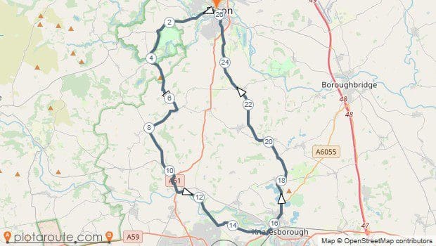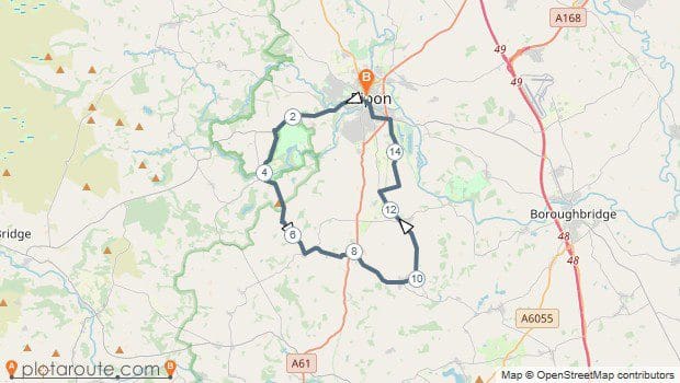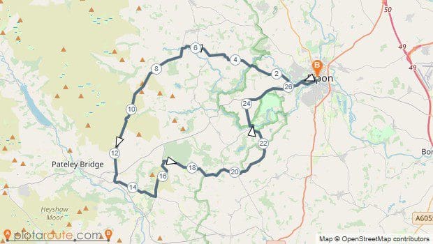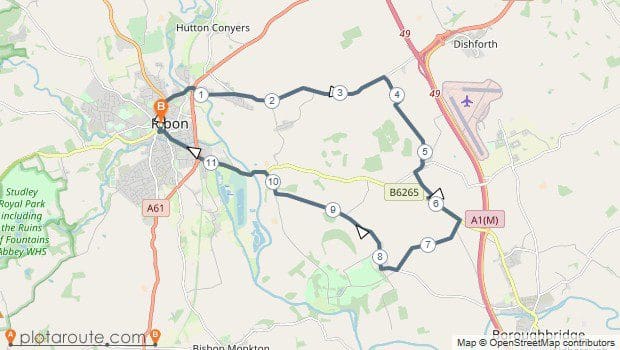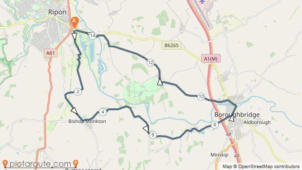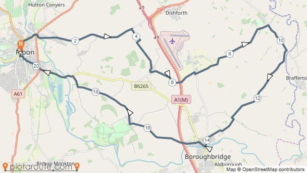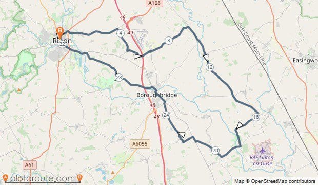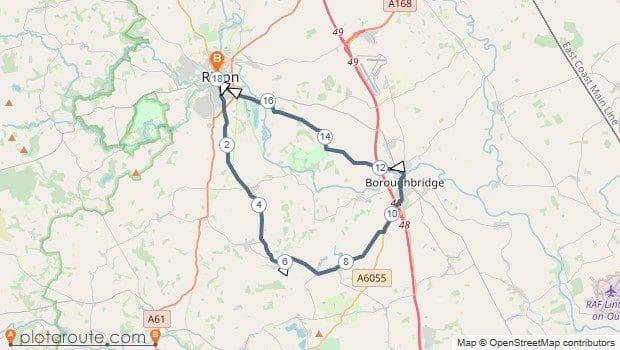 A moderate circular route that passes through Bishop Monkton & Saveley before looping back through Boroughbridge on its way back towards Ripon.