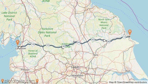 A very challenging route for experienced road cyclists, starting in Morecambe & ending in Bridlington.