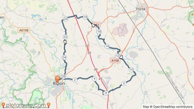 A relatively flat route, taking in Cundall, Milby & Boroughbridge.